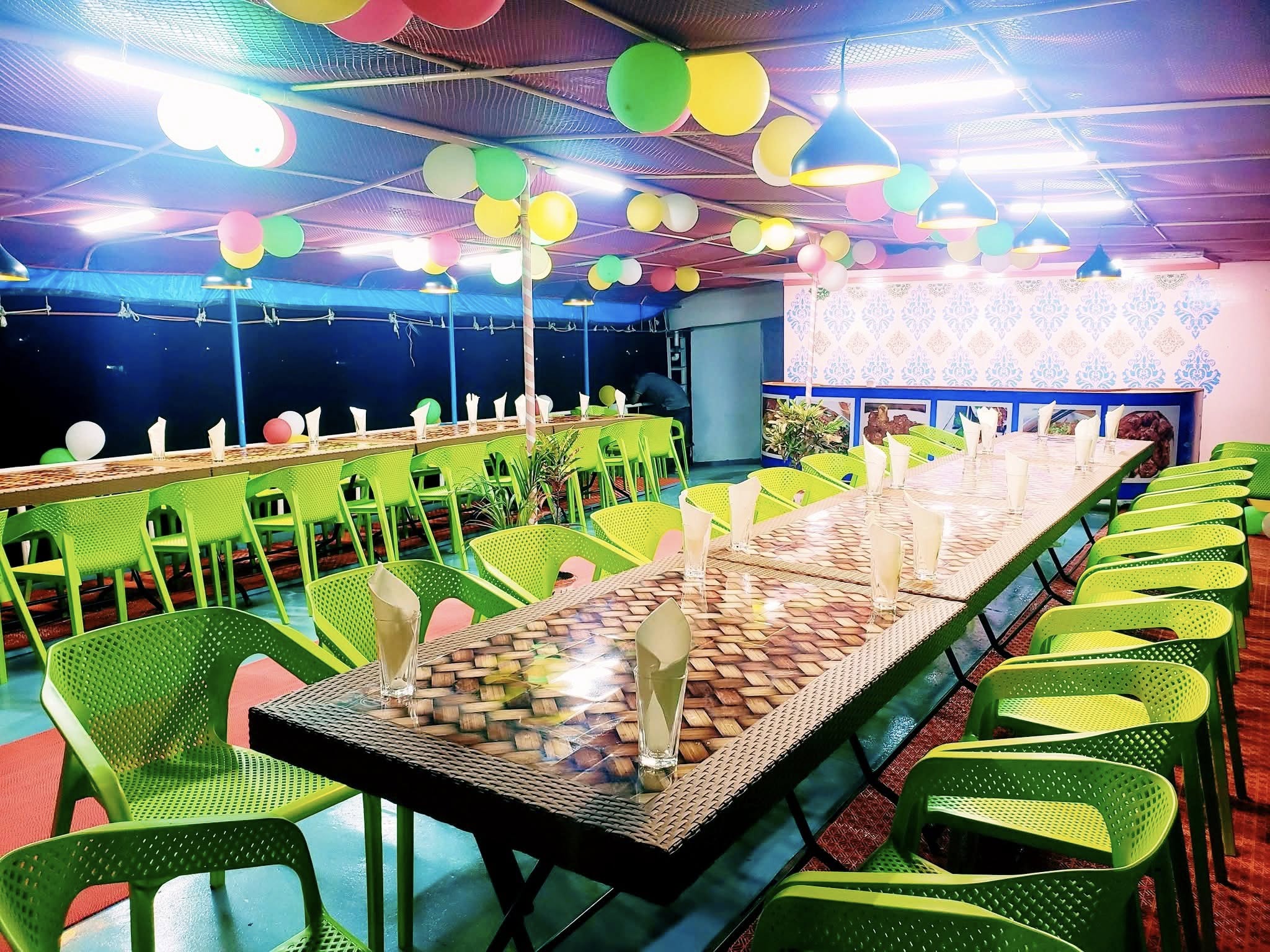 - Lunch: Plain Rice, Mixed Vegetables, Daal, Prawn Curry, Fried Fish, Chicken Roast, Salad, Sweets