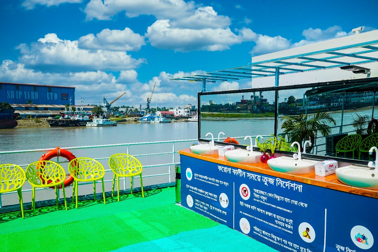 Guests are received at Khulna Jail Ghat at 7:30 AM. The ship sails through scenic rivers β Rupsha and Pashur β passing Rupsha Bridge, Rampal Power Plant, and Mongla Port.